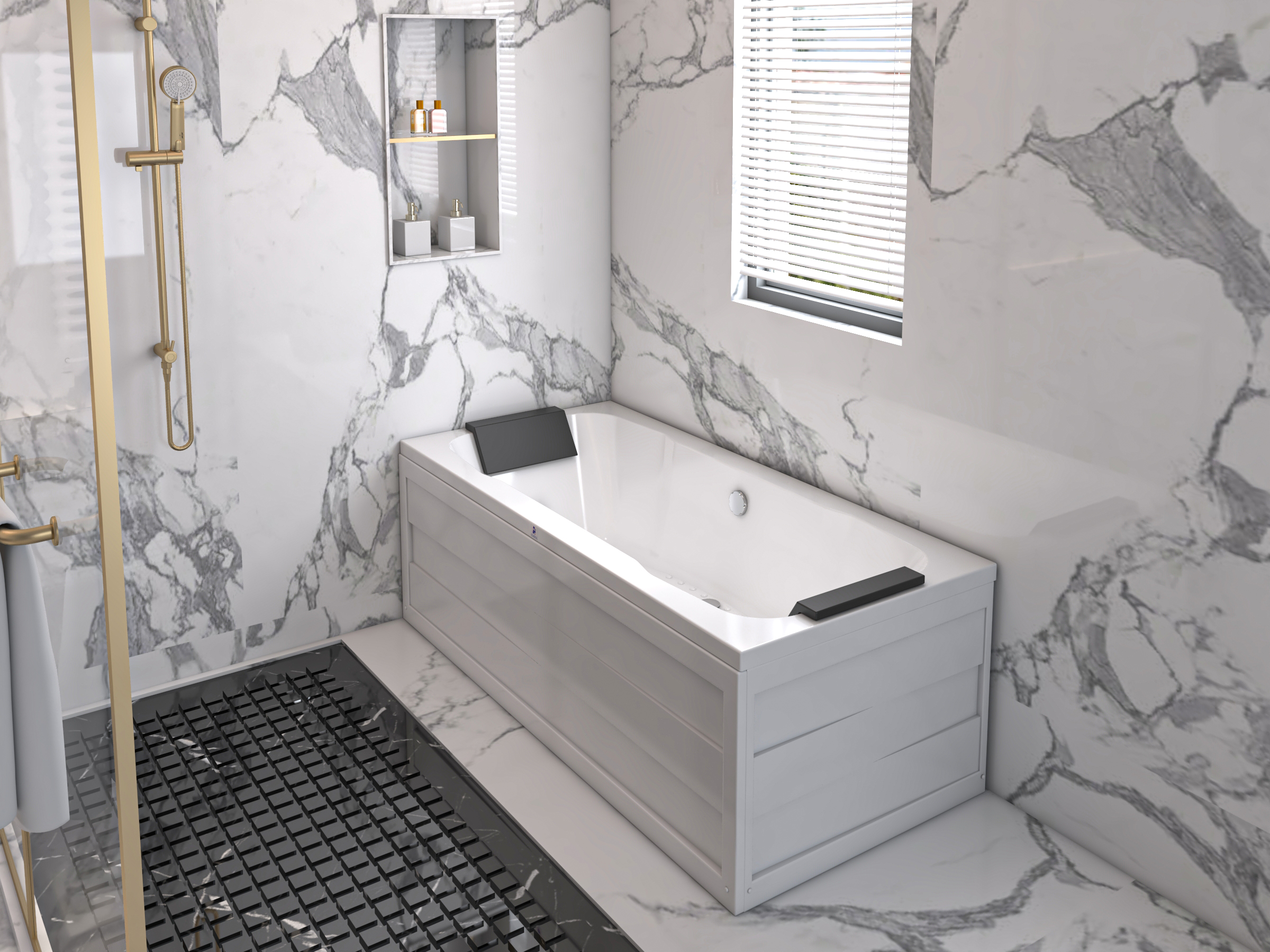 وان آسام با ابعاد 180×80×57 سانتیمتر، یک وان دونفره استاندارد است که فضای کافی را برای یک تجربهی آرامشبخش و راحت فراهم میکند. این ابعاد نهتنها برای حمامهای بزرگ مناسب است، بلکه در بسیاری از حمامهای متوسط نیز قابلیت نصب و استفاده دارد.